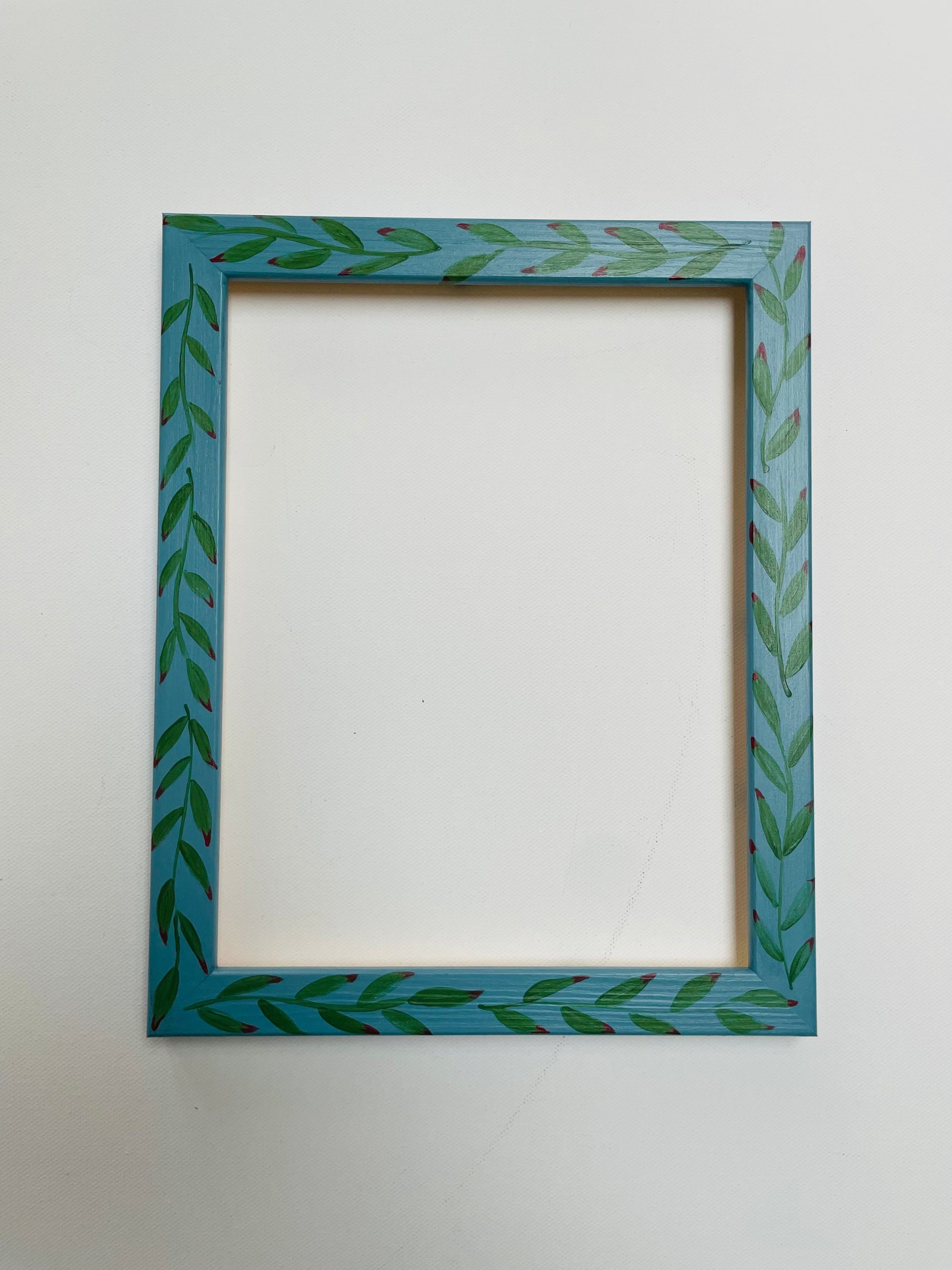 Create a serene focal point with this hand painted blue frame, delicately decorated with leafy green branches.The nature-inspired design brings a calming, organic touch that beautifully complements photos, prints, or artwork.
