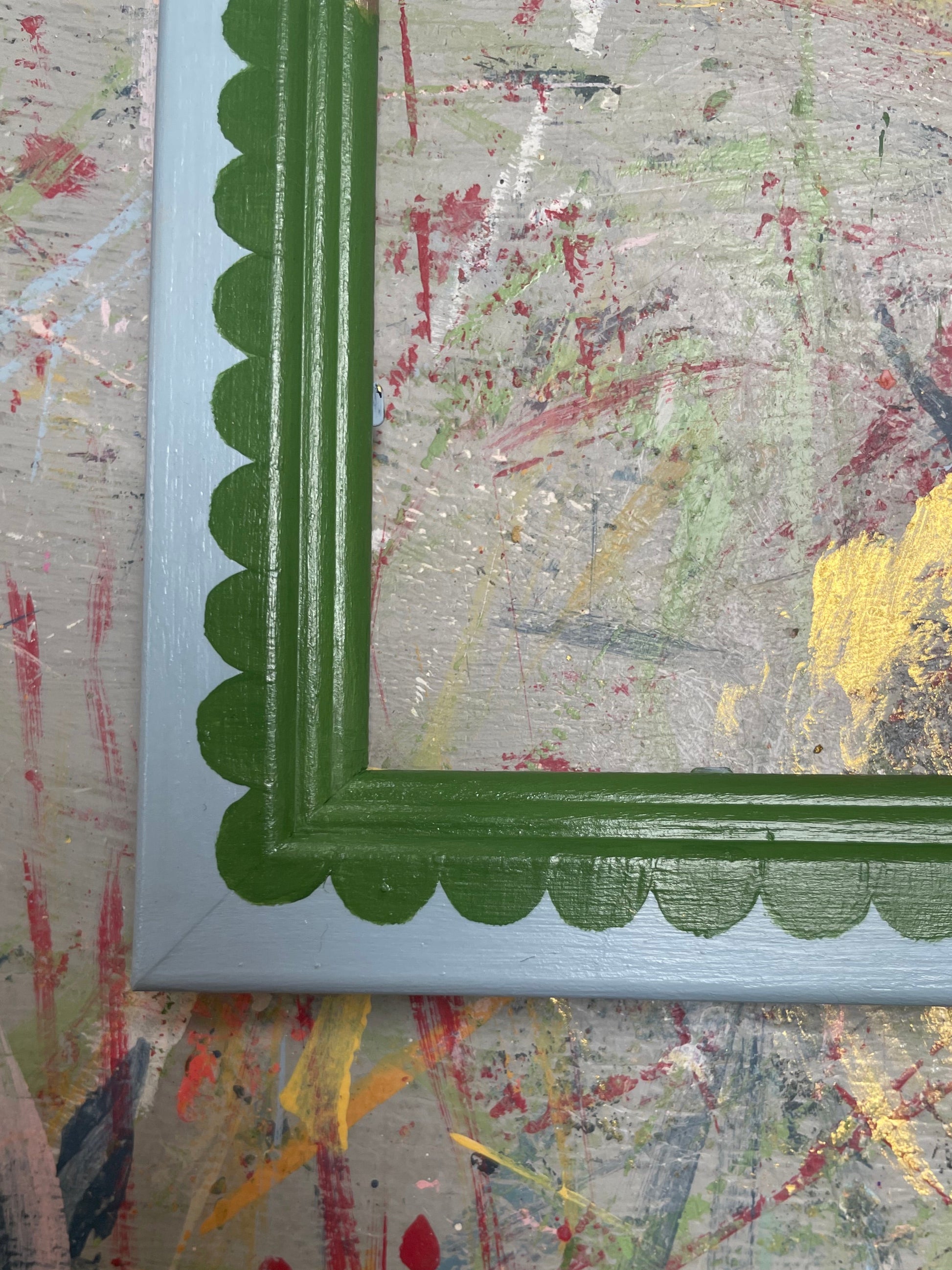 Liven up any space with this hand-painted scalloped frame in Hopper and French Blue. Perfect for showcasing your favourite photo, print, or artwork while adding a touch of modern whimsy to your home.