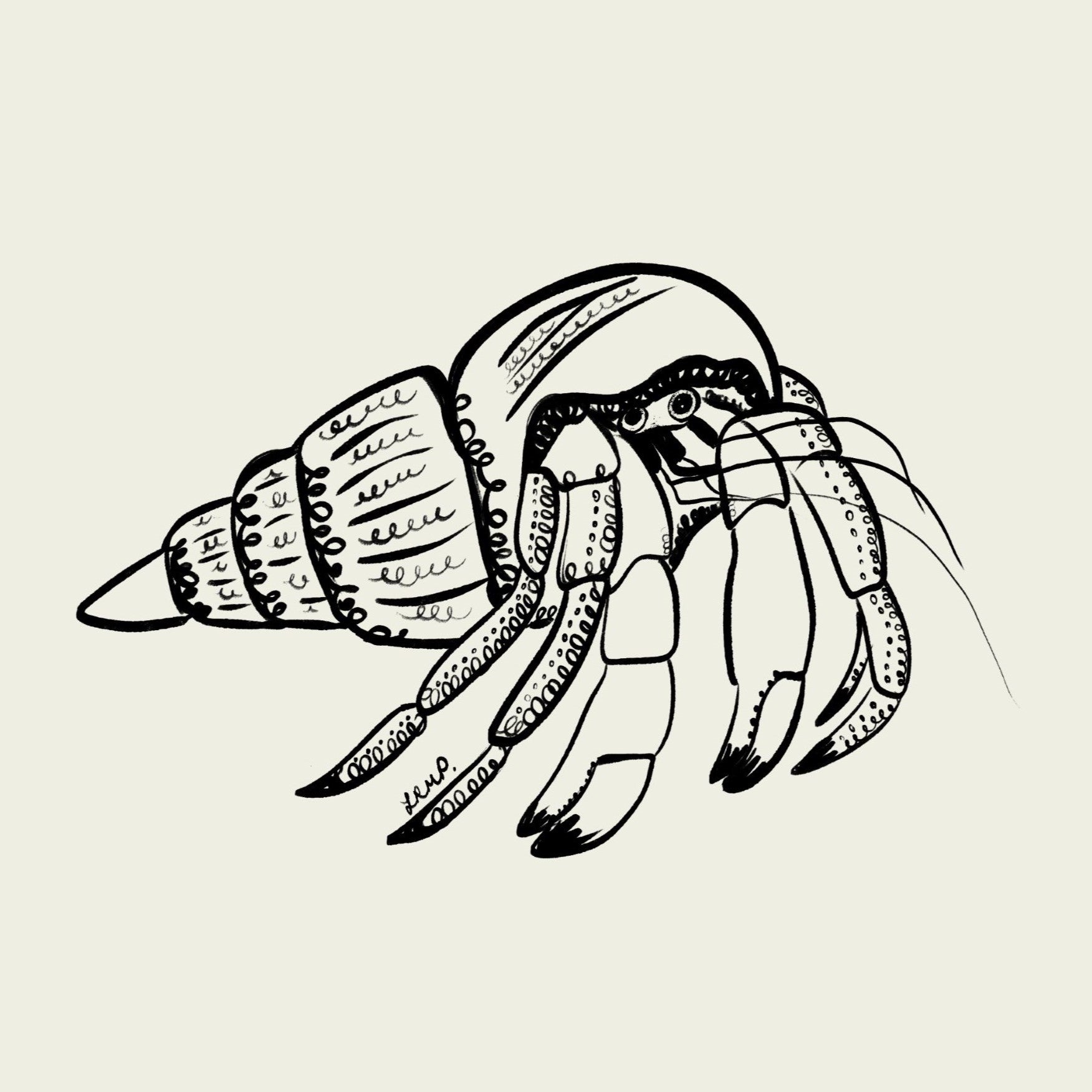 hermit crab with greeny blue watercolour striped surround - fish art print by cat dearlove