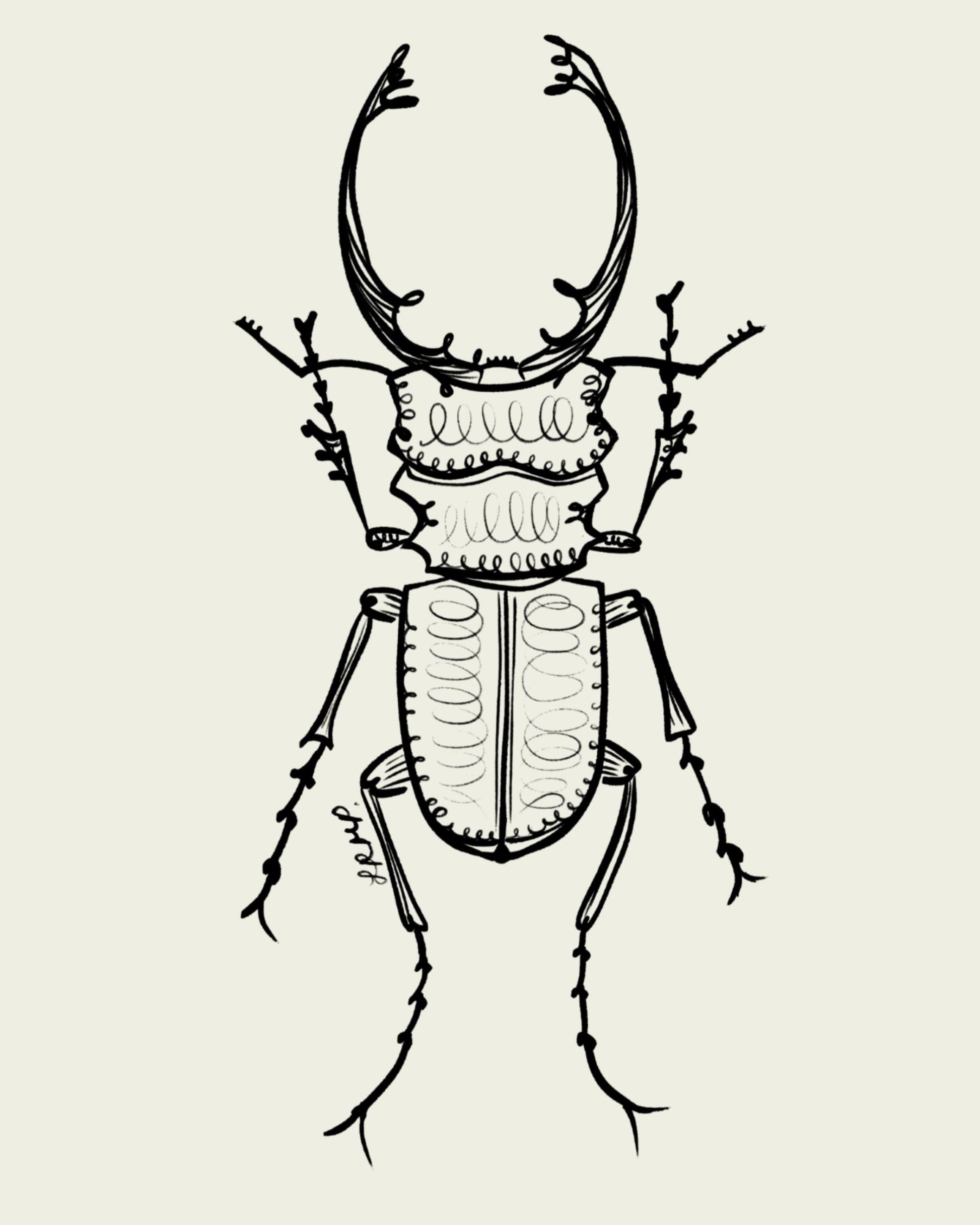 stag beetle with purple watercolour striped surround - bugs art print by cat dearlove